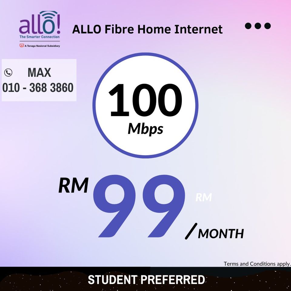 WiFi Plan: 100 Mbps at RM 99/month